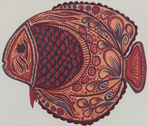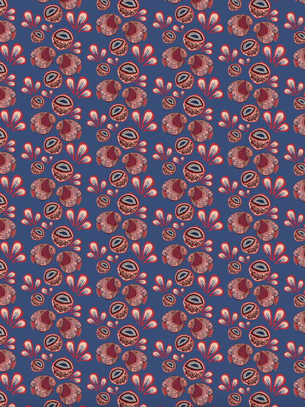 The Grand Anglers project was created by Neely Malik, Sophia Stacy, Sophie Clark, and myself. This group project involved deciding on a collective theme, interviewing subjects who fit the target audience, and creating motifs based on the theme of the project and the results of the interviews. The Grand Anglers collection is targeted toward 70-80-year-old men. The end accessories that were decided on included vests, hats, ties, and socks. Our goal for the interviews was to determine what gave our target audience joy. Many of our interviewees mentioned enjoying activities such as boating and fishing which we decided to make the theme of the collection. Other questions included what colors you enjoy wearing, what patterns you wear most frequently, and what accessories you wear most often. My team members and I collaborated to make a color palette for the collection and a list of motifs to include as well. Each member developed their own motifs using gouache or watercolor and then they were scanned, edited on photoshop, and turned into repeat patterns on Kaledo. Each member mapped out ideas on how they wanted to organize their motifs before hand using block repeats, brick repeats and stripe repeats. Once the repeats were created on Kaledo we went back to photoshop and texture mapped our prints onto apparel images. To see more of this project, look below.