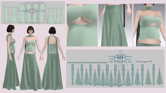 See below all of the design components from my semester long computer-aided design project which display all of the skills and techniques I have developed throughout this semester. My collection title is "Petal & Pearl"